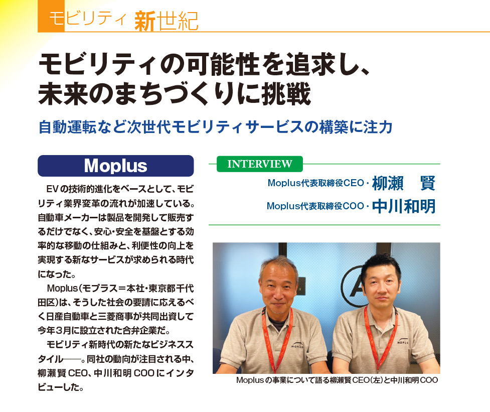 Moplus(モプラス=本社・東京都千代田区)は、そうした社会の要請に応えるべく日産自動車と三菱商事が共同出資して今年3月に設立された合弁企業だ。