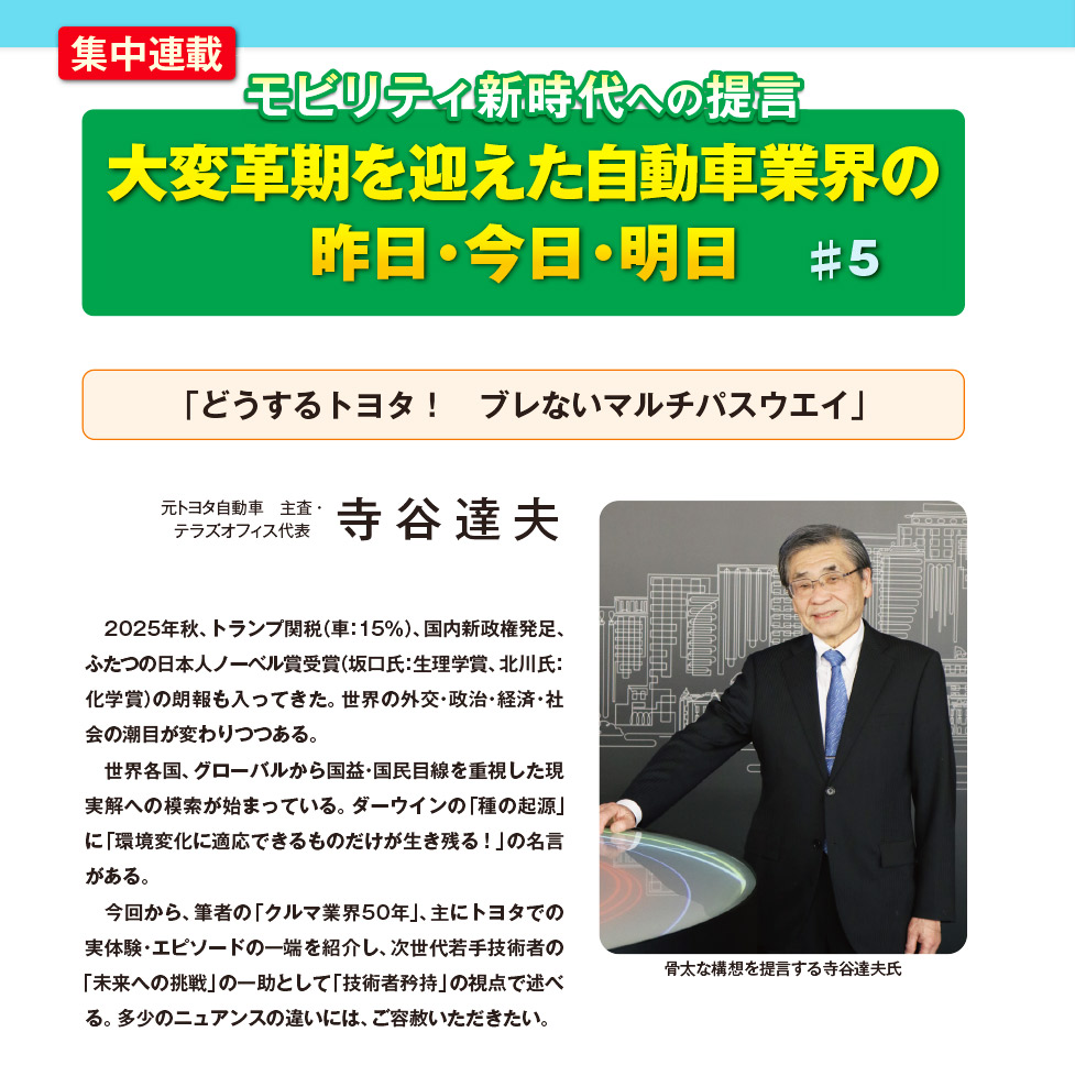 今回から、筆者の「クルマ業界50年」、主にトヨタでの実体験・エピソードの一端を紹介し、 次世代若手技術者の「未来への挑戦」の一助として「技術者矜持」の視点で述べる。 多少のニュアンスの違いには、ご容赦いただきたい。