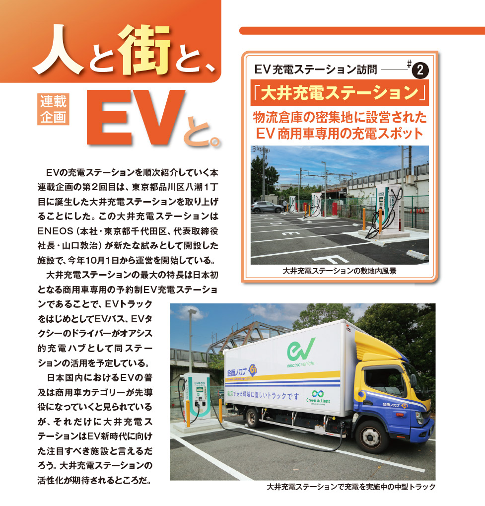 EVの充電ステーションを順次紹介していく本連載企画の第2回目は、 東京都品川区八潮1丁目に誕生した大井充電ステーションを取り上げることにした。 この大井充電ステーションはENEOS(本社・東京都千代田区、代表取締役社長・山口敦治)が新たな試みとして開設した施設で、 今年10月1日から運営を開始している。